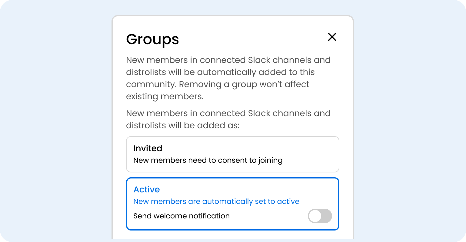You can now control how new members joining connected Slack channels and distrolists are added to your community. Learn more